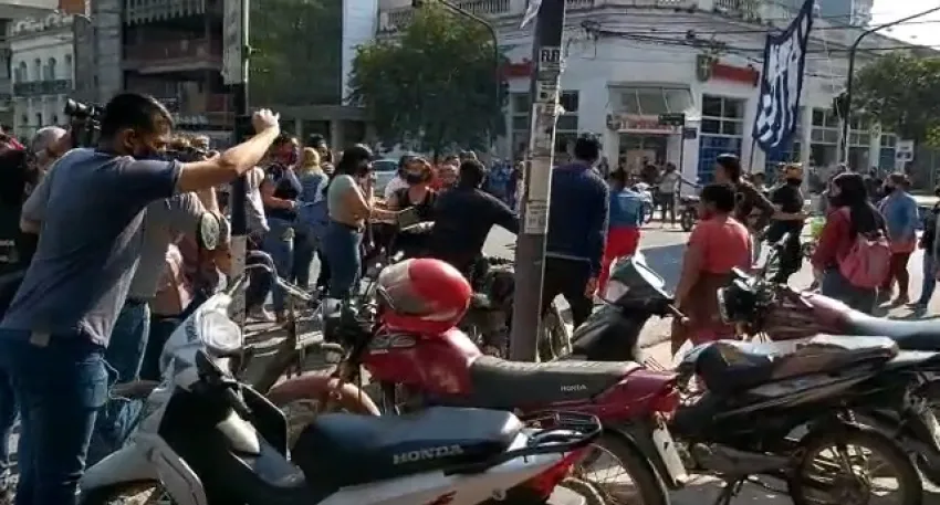 Esta mañana se vivieron momentos de extrema tensión en pleno centro de Resistencia durante una manifestación. Norberto Meza se dirigió al Nuevo Banco del Chaco a realizar gestiones, cuando fue abordado por un grupo de manifestantes que lo tiraron al piso.