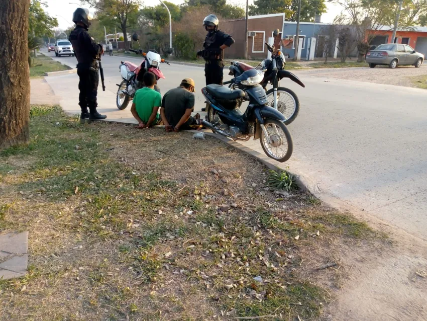 Fueron siendo interceptados en calle 000 y 45 B° San Martín, donde demoraron a una persona de 31 años de edad, con domicilio en el barrio Santa Mónica, y a otro de 25 también domiciliado en el mismo barrio.