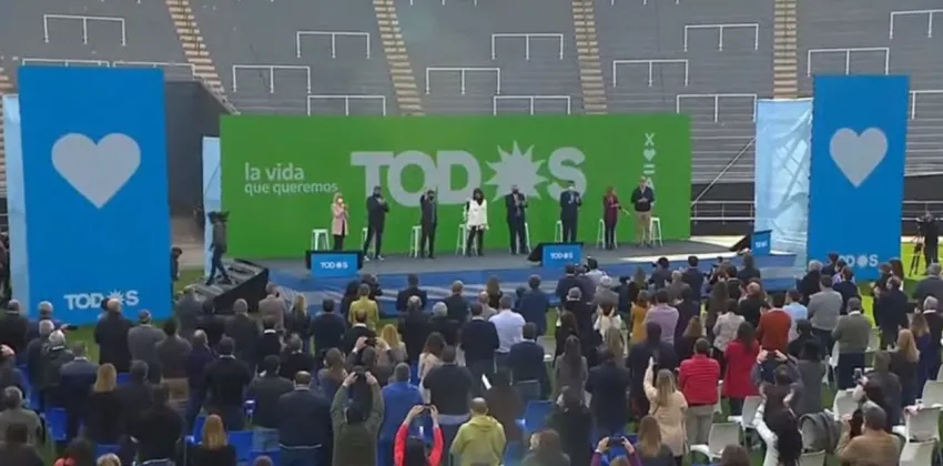 Por segundo día consecutivo, el presidente Alberto Fernández y la vicepresidenta Cristina Kirchner se volvieron a mostrar juntos en un acto. Esta vez la foto de unidad del Gobierno tras el escándalo de Olivos los mostró en un plenario en el Estadio Único de La Plata para delinear los ejes de la campaña electoral del Frente de Todos.
