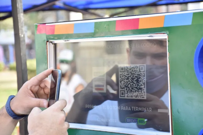 En la jornada de ayer, el intendente de Corrientes, Eduardo Tassano presentó en la plaza Vera, una máquina que permitirá a los ciudadanos, previo a descargarse la aplicación "ReciclAds", colocar botellas plásticas y mediante el escaneo del código QR, canjear por saldo para la tarjeta SUBE.