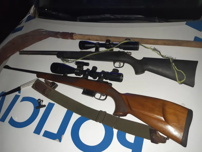 En ese momento intentó fugarse en un tractor dirigiéndose a otro predio vecino. Mientras lo seguían, notaron dos armas de fuego tipo carabina escondidas entre las malezas y apareció otro hombre de 37 años con un cuchillo de carnicero en la cintura.