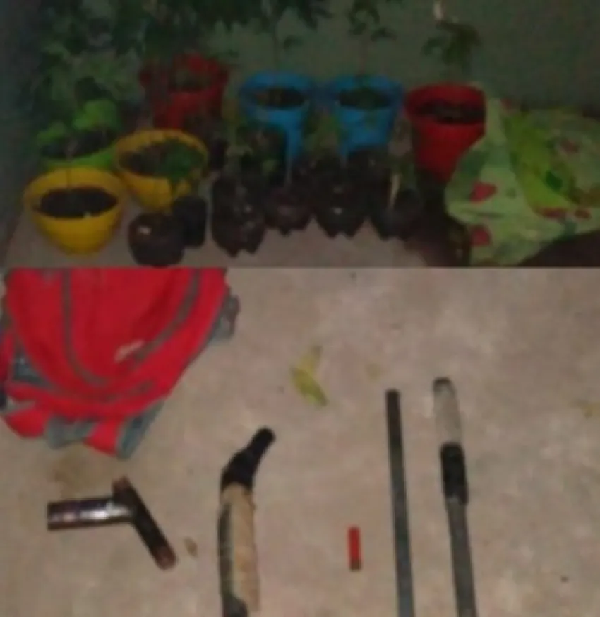 Tras ello, al realizar el acta de secuestro de las bebidas alcohólicas, observaron una mochila, la cual fue revisada y en su interior encontraron dos armas de fabricación casera "tumberas", como asimismo debajo de una mesa y tapadas por un mantel, 20 plantines de marihuana de distintos tamaños, que fueron examinadas por personal de Drogas de Sáenz Peña.
