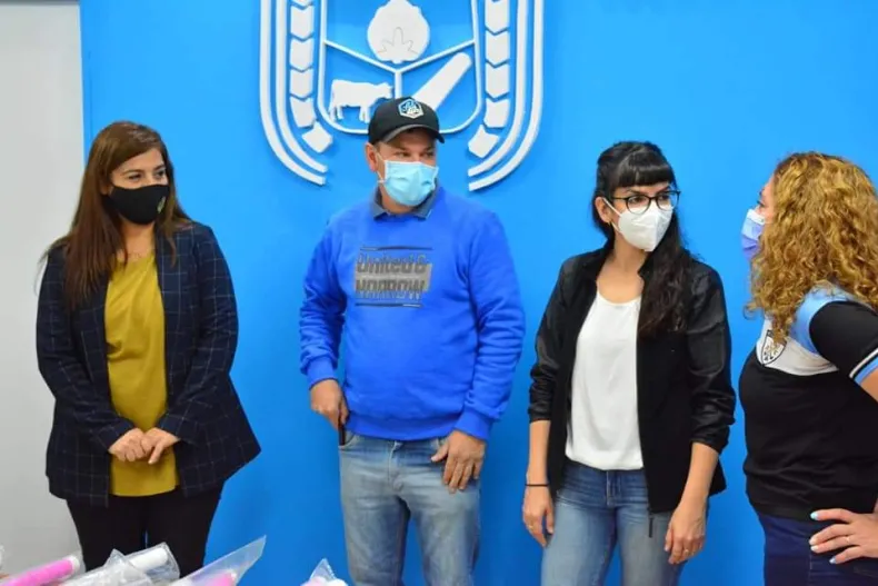 La vicegobernadora Analia Rach Quiroga junto al intendente Pío Sander, el secretario de Gobierno Ismael Pablo Barnes y el subsecretario de Deporte Roberto Scheffer, realizaron entrega de elementos deportivos a la presidenta de la comisión del club Abipones hockey.