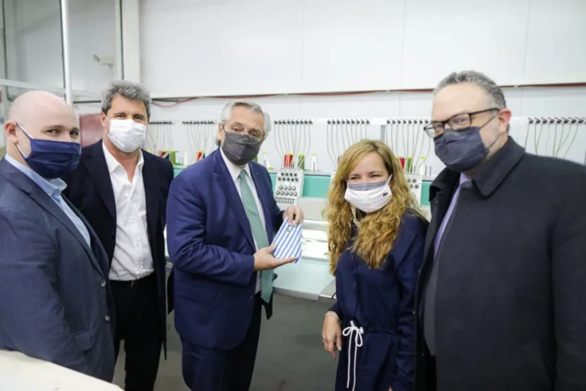 El presidente Alberto Fernández afirmó hoy que la Argentina necesita "más exportaciones, gente trabajando y más fábricas funcionando", durante una recorrida por la fábrica textil Vesuvio, en la provincia de San Juan.