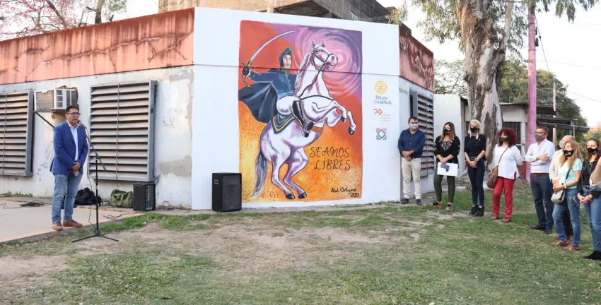Martínez y el Rotary Club Norte de Resistencia descubrieron un mural en homenaje a San Martín