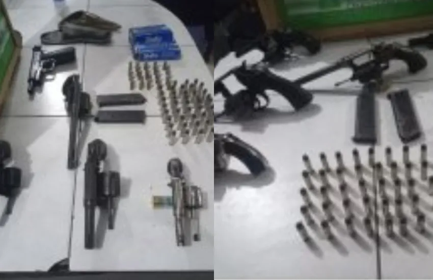 En dicha acción, la bolsa quedó en el interior del inmueble por lo que los uniformados la secuestraron. La misma contenía una pistola calibre 45, con dos cargadores, cuatro revólveres, dos calibres 32 y los restantes calibre 38. Además de 47 cartuchos calibre 38, dos fundas de armas y 25 cartuchos calibre 9 milímetros.