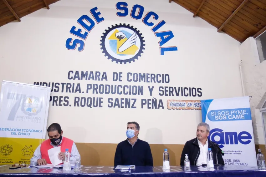 "Ambas acciones buscan impulsar el comercio y consumo local para reforzar y acompañar al sector",señaló el gobernador en el acto realizado en Presidencia Roque Sáenz Peña, donde estuvo acompañado del titular de la Fechaco, José Luis Cramazzi.