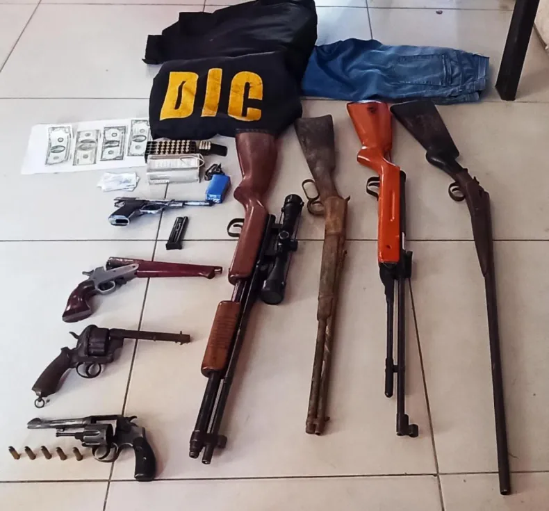 Como resultado, se logró el secuestro de 13 teléfonos celulares, prendas de vestir utilizadas en el momento del robo, un arma de fuego Bersa calibre 22, dos revólveres calibre 38, un arma tipo pistolón, cuatro escopetas, 25 cartuchos calibre 22, y una caja de cartuchos calibre 38, dos estéreos, un drone, y US$ 301 dólares, y una camioneta Toyota Hilux. Todos estos elementos resultaron de interés para la causa de mención.