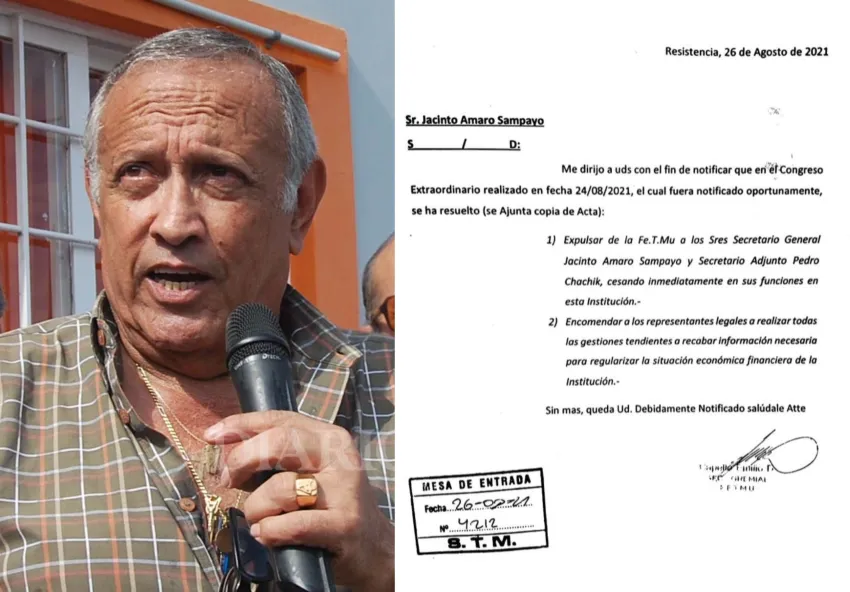 El secretario gremial de la Federación de Trabajadores Municipales de Chaco, Emilio Capello, firmó este martes 24 un documento en el cual se "expulsa" al secretario general, Jacinto Sampayo, y a su secretario adjunto Pedro Chamichik de la Federación.