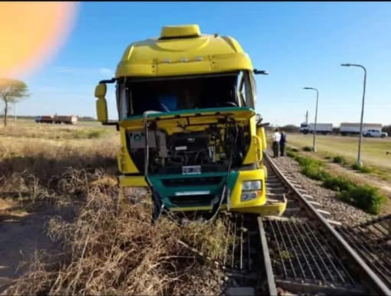 A plena luz del día chocaron un tren carguero y un camión, el camionero sufrió lesiones leves
