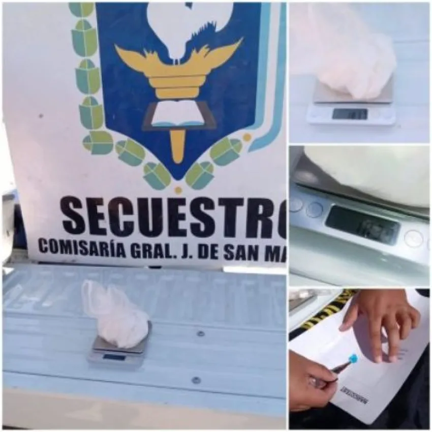 Este sábado, en horas del mediodía, los agentes de la comisaría de San Martin circulaban por la calle del barrio Norte, cuando pudieron observar a un joven que al verlos salió corriendo hacia un baldío y dejo un paquete con una sustancia blanca en la vereda.