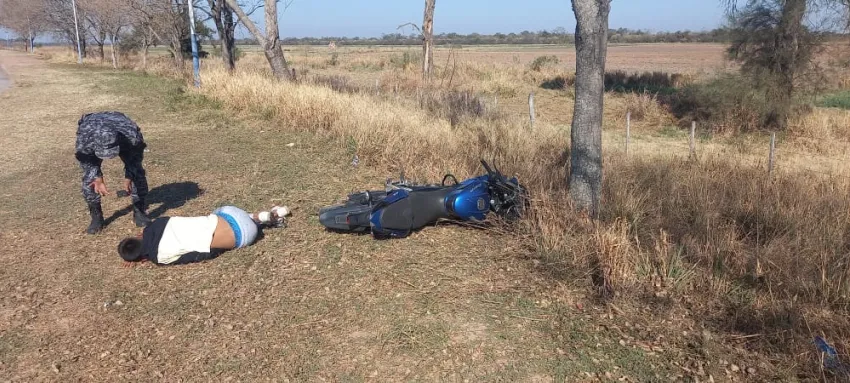 Un motociclista que perdió el control de su rodado y chocó contra un árbol, resultó con lesiones de distinta consideración.