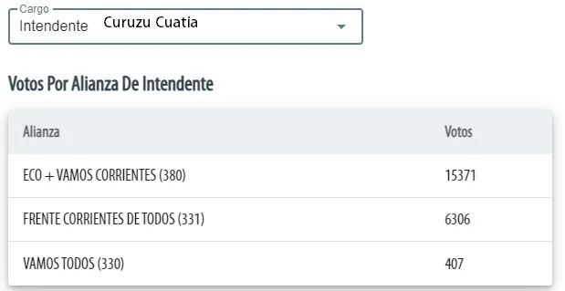 Curuzú Cuatia: ECO 70% / Todos 28% / Vamos Todos 2%