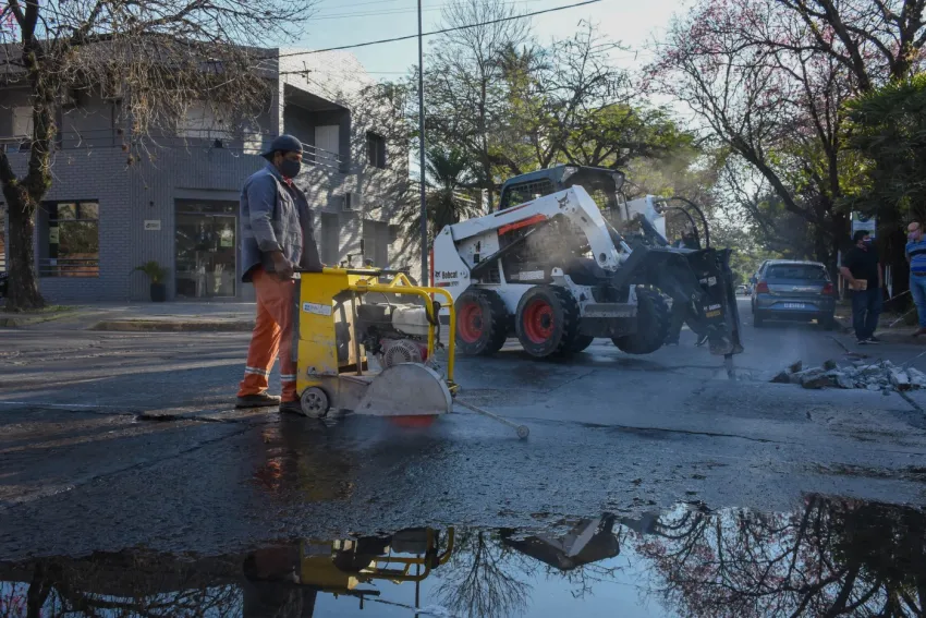 El subsecretario de Infraestructura y Equipamiento Urbano, Marcos Pereyra, expresó: "Estamos realizando en esta esquina de Pueyrredón y Corrientes los trabajos previos de bacheo en este encuentro de calles donde tenemos dos hundimientos importantes".