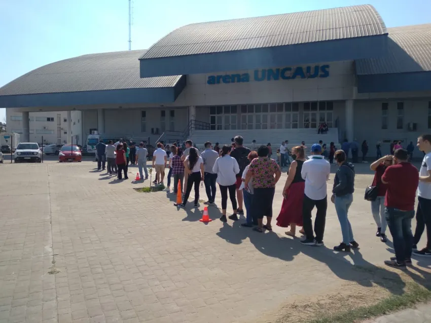 Numerosos vecinos se acercaron en la jornada de hoy a completar la segunda dosis de su vacunación en el Estadio Arena UNCAus, donde se concentró un gran número de personas realizando extensas filas para esperar el turno y poder vacunarse.