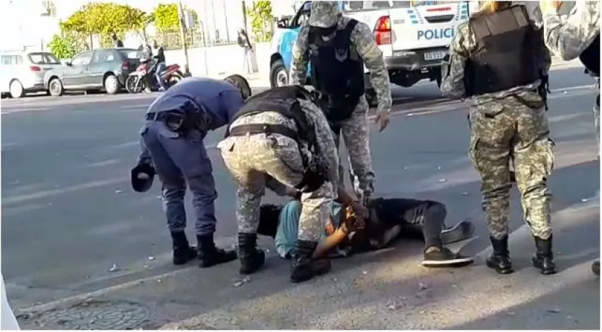 Momentos antes, el denunciado se encontraba quemando una cubierta y realizando un corte de transito en un tono agresivo, con intenciones de arrojar a las fuerzas de seguridad dicha sustancia, por lo que tuvieron que reducirlo y esposarlo.