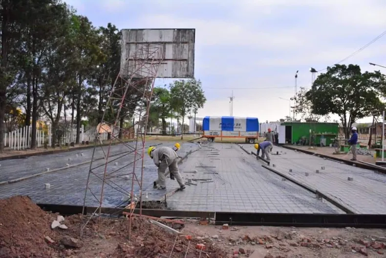 Dieron inicio a nuevas obras en las instalaciones del playón deportivo del barrio Libertad, donde se puso en ejecución la construcción de una cancha reglamentaria de básquet.