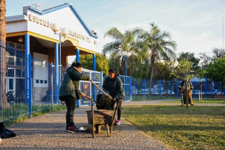 Dentro de un operativo de saneamiento y de forma simultánea en 5 escuelas de la ciudad, el Municipio de Resistencia llevó adelante tareas de desmalezado, barrido, pintura de cordones y poda responsable. Se trata de una intervención integral llevada a cabo por trabajadores comunales para mantener las instituciones.