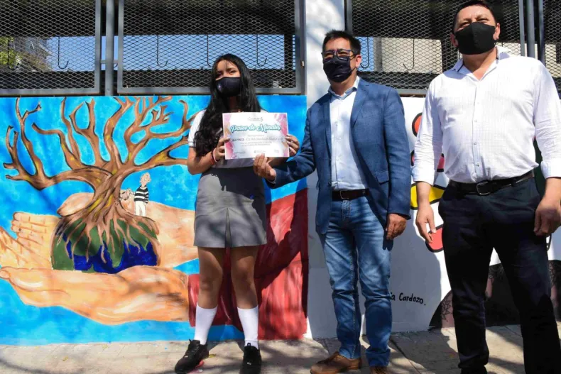 Gustavo Martínez acompañó la inauguración del paseo de murales en el exterior del colegio Industrial