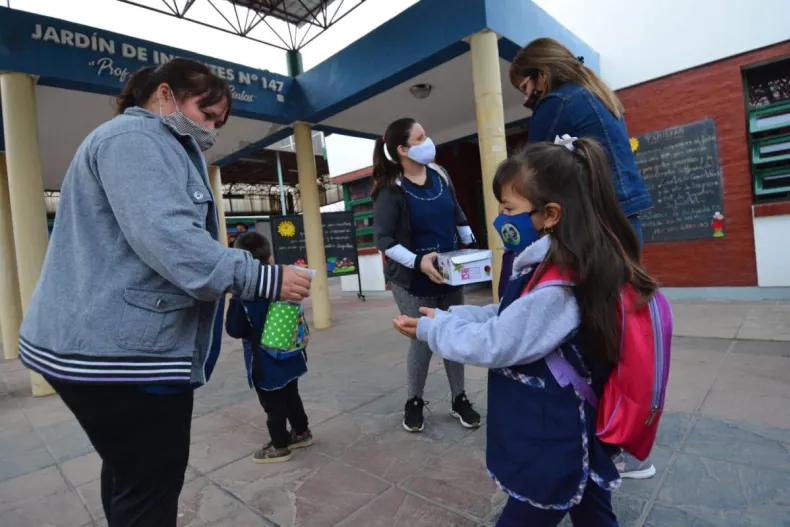 Los padres, madres, tutores y familia de estudiantes acompañaron esta jornada con entusiasmo y alegría, ya que prácticamente se avanza hacia el fin de las burbujas de acuerdo a la realidad de cada institución escolar y en las localidades con riesgo medio o bajo de la circulación de COVID 19, cumpliendo con el horario completo de clases presenciales cuidadas, garantizando las medidas de protocolo sanitario respetando el distanciamiento dentro del aula de 90 cm, cada estudiante debe tener un lugar asignado. Asimismo, conservar el distanciamiento en espacios comunes y entre docentes y estudiantes de 2 metros.