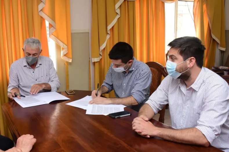 El intendente Bruno Cipolini y el secretario general de la Asociación Gremial Centro Empleados De Comercio, Hugo Aguado, firmaron un Convenio de Cooperación, Asistencia y Trabajo Conjunto con el objetivo de promover el desarrollo deportivo y cultural, y realizar capacitaciones en áreas comunes a ambas Instituciones.