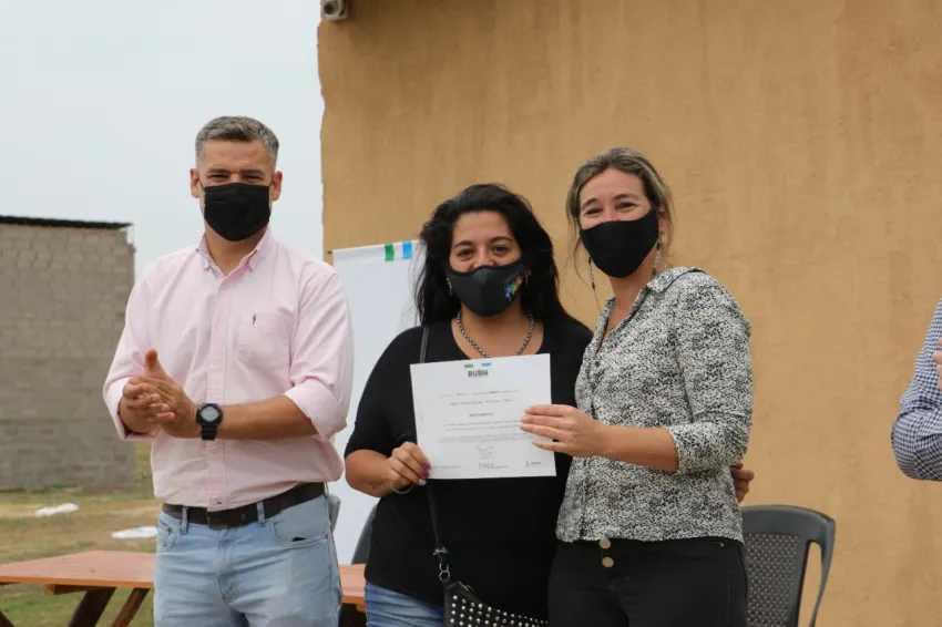 La secretaria de Desarrollo Territorial y Ambiente, Marta Soneira, entregó 110 certificados de Registro Único de Beneficiarios Hábitat (RUBH) a las familias del barrio "Las Palmeras", ubicado en la Chacra 137 de Resistencia. Participaron también los subsecretarios de Ordenamiento Territorial, Alan Strusiat, y de Gestión de Tierras y Articulación Comunitaria, Leandro García Arias.