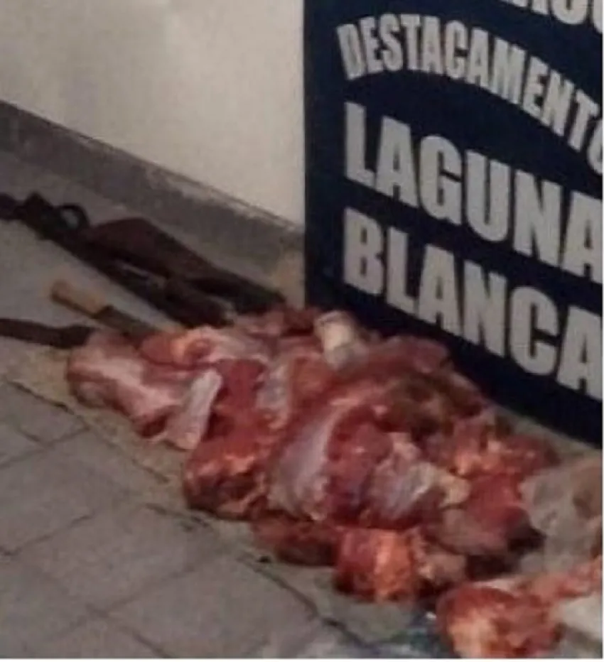 Ayer por la tarde, en Laguna Blanca, dos jóvenes de 18 años fueron detenidos por abigeato. Además del cargamento de carne que transportaban, la Policía de la Comisaría de Puerto Tirol secuestró una escopeta calibre 16, un cartucho del mismo calibre y un machete.