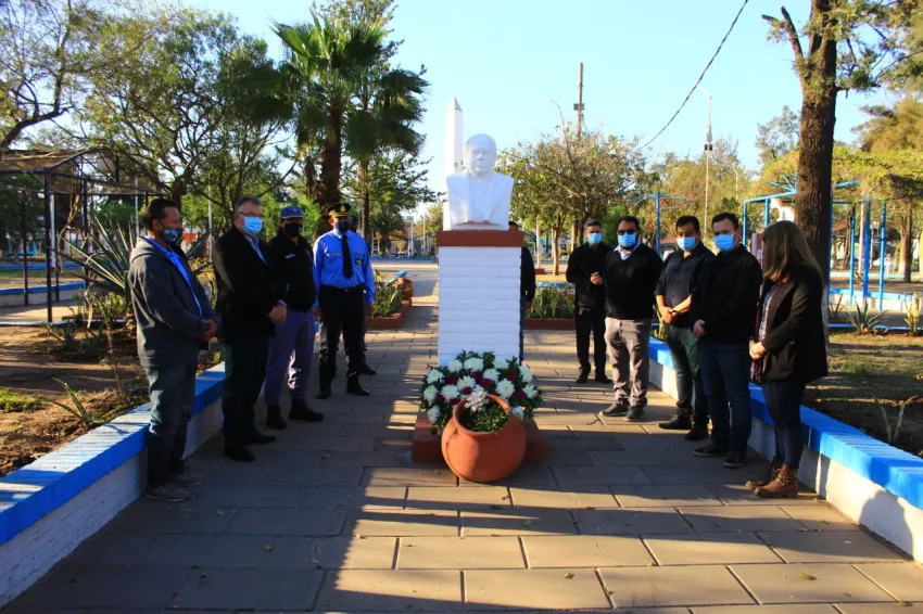 Finalmente, el acto culminó con una entrega floral al pie del busto de Domingo Faustino Sarmiento.