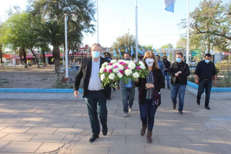 En la Plaza Central se llevó adelante un emotivo acto para conmemorar el día del maestro. La ceremonia comenzó con el izamiento de las banderas oficiales -Nacional, Provincial, Local y Wiphala-.