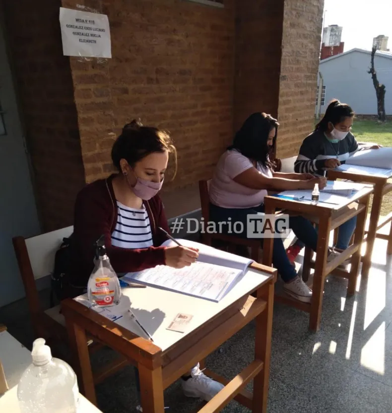En las escuelas se pudo ver a una persona en el ingreso que controlaba el uso de barbijo, el distanciamiento social, que entre un mínimo de personas e indicaba dónde se encontraba la mesa de cada elector.