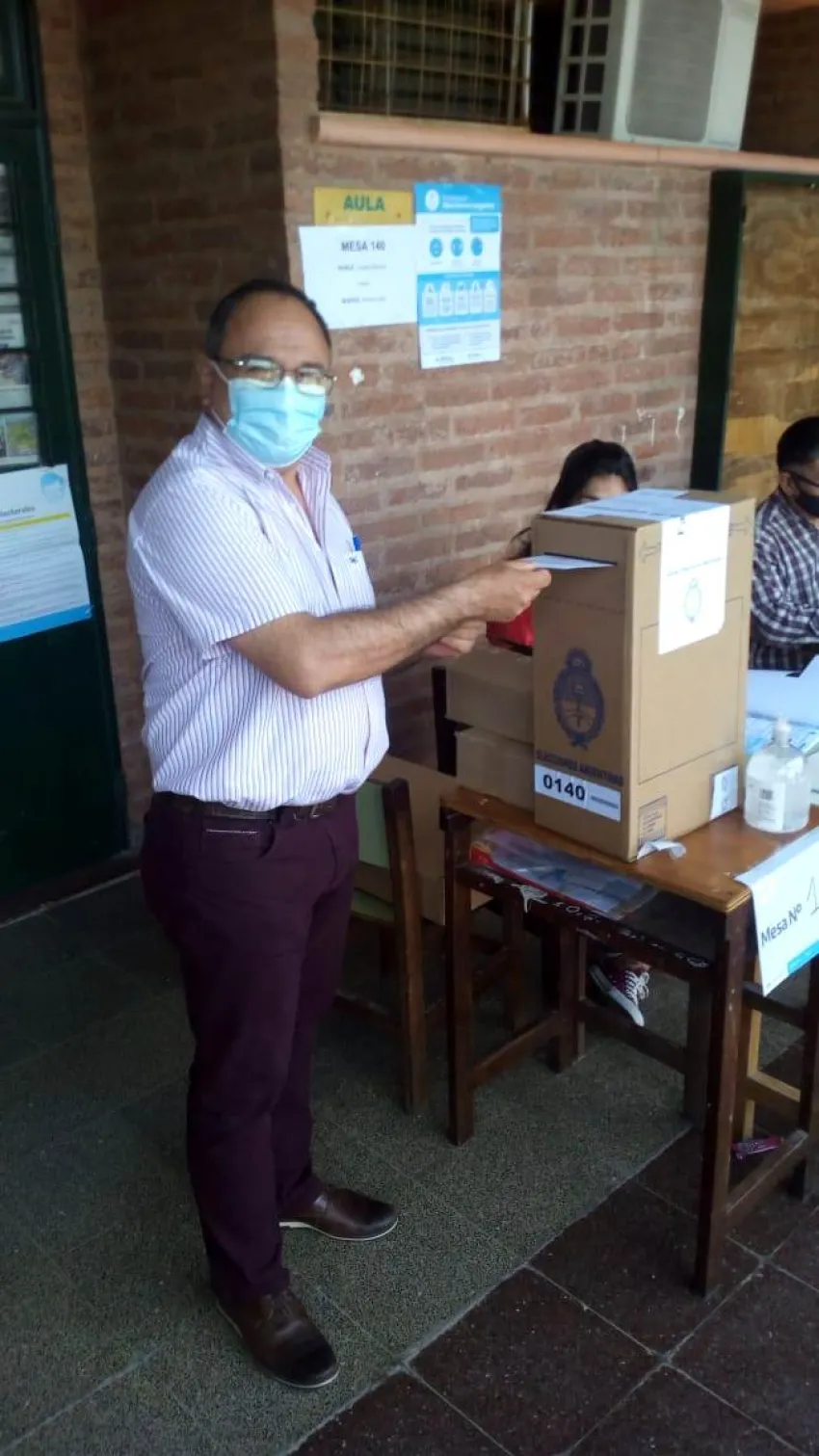 El precandidato a diputado nacional de la Lista 503 A Yo Cambio, el médico Julio Picón, emitió su voto en la E.G.B N° 168 "General Mosconi" de Resistencia.