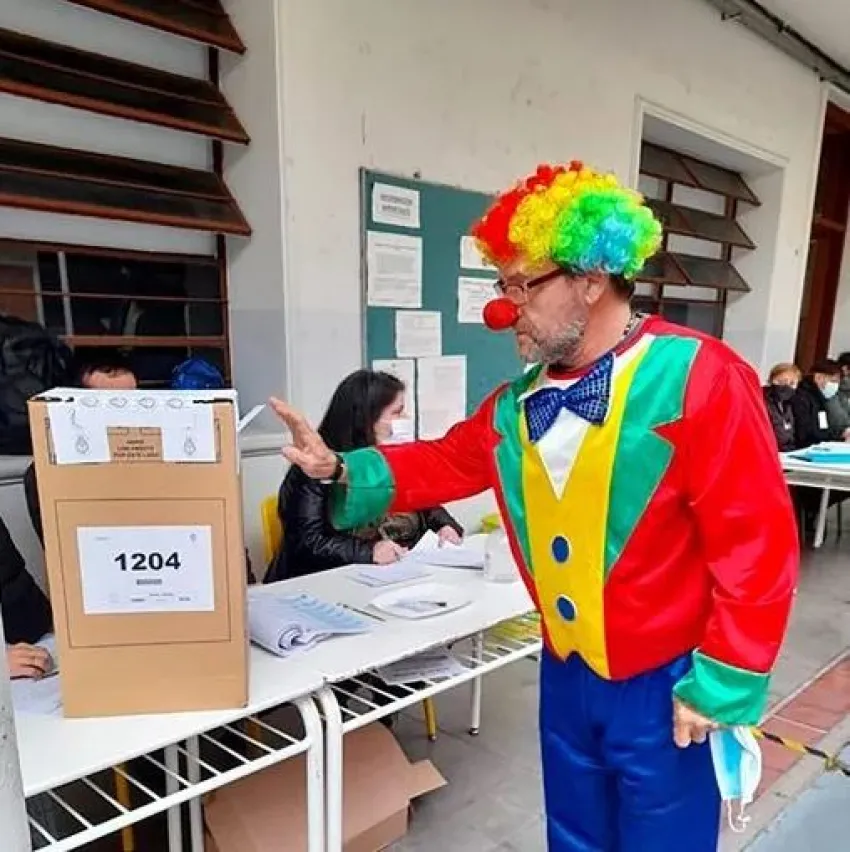 Mario Adrián Gabaglio, conocido como "Payaso Muralito", sufragó con la cara pintada y su clásico traje en la escuela N° 34 de Moreno, ubicada en ciudad de Buenos Aires.
