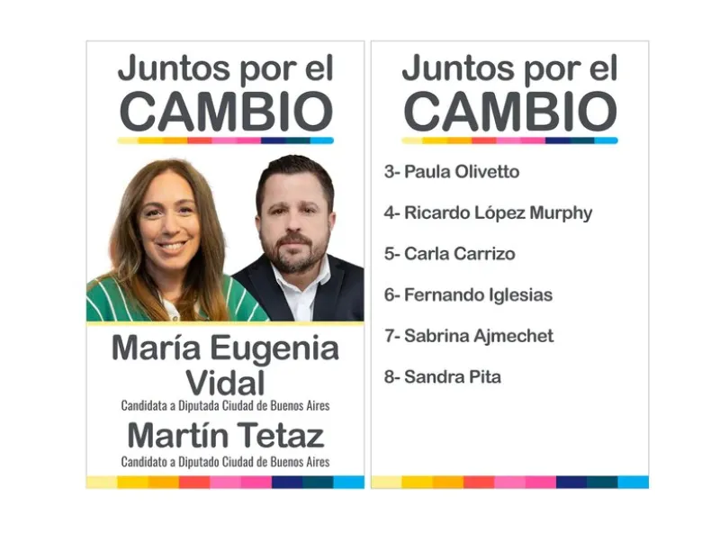 En función de ese acuerdo, la boleta final quedaría integrada de la siguiente manera: Vidal, Martín Tetaz, Paula Olivetto Lago (Coalición Cívica), López Murphy, Carla Carrizo (UCR), Fernando Iglesias, Sabrina Ajmechet (cercana a Patricia Bullrich), Fernando Sánchez (Coalición Cívica) y Sandra Pita, de la lista Republicanos.