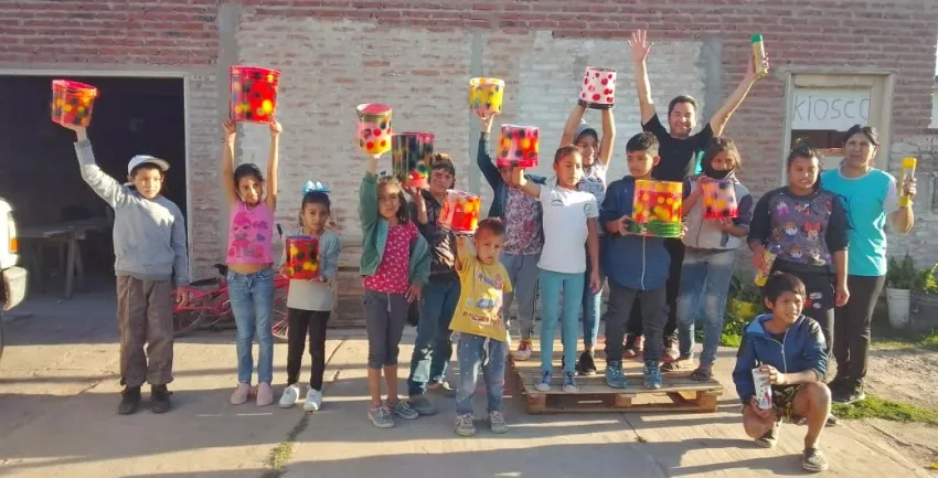 La tarea está en manos de los propios chicos que son quiénes confeccionan los bombos con tachos de pintura en desuso.