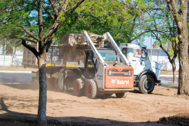 En esta primera etapa se iniciaron los trabajos en la plazoleta que se encuentra ubicada sobre avenida 000 entre 19 y 21. Actualmente se realiza la limpieza de todo el sector, quitando cimientos antiguos y se realiza movimiento de suelo.