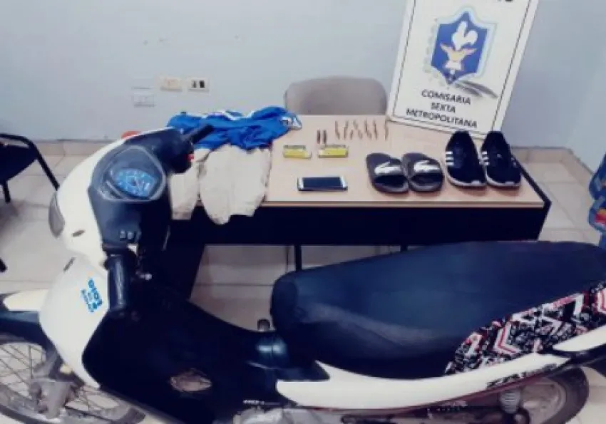 En el siguiente procedimiento, lograron detener a un joven de 20 años e incautaron varias prendas de vestir y una moto ZB, 110 cilindradas, color blanco. Dicha motocicleta coincide con el utilizado al momento del ilícito.