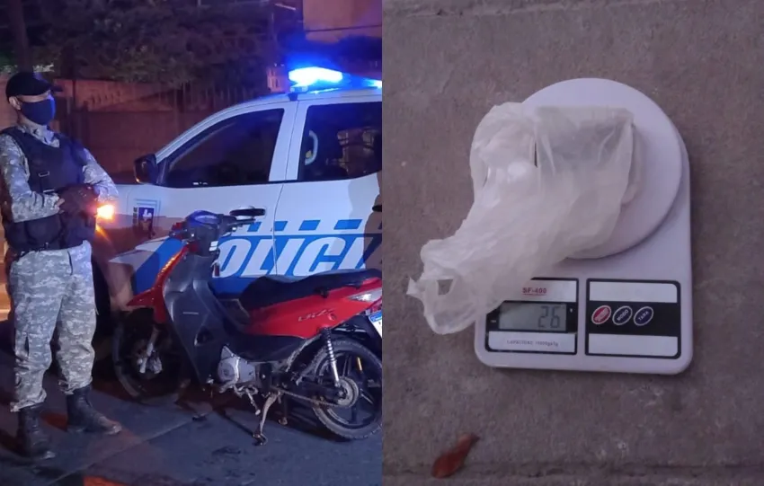 A continuación, los policías procedieron a verificar si la moto contaba con pedido de secuestro, además de pedirle que exhiba sus pertenencias. Allí en ese momento, el joven extrajo del interior de su campera un envoltorio blanco, el cual contenía una sustancia similar a la marihuana.