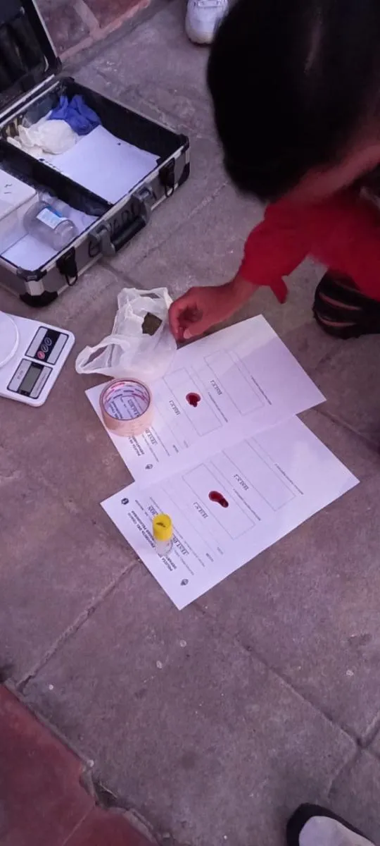 De inmediato, solicitaron la presencia del personal de Consumos Problemáticos, quienes arribaron en breve e iniciaron el pesaje y prueba antinarcóticos, el cual determinó que se trataba de 26 gramos de cannabis.