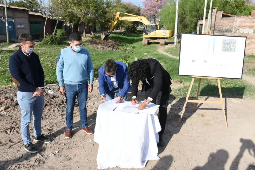 A través de la rúbrica del Intendente con Hugo Javier Domínguez, interventor administrador de la empresa Ing. Pedro Alberto Martínez Construcciones, comenzaron las obras relacionadas a la ejecución de 103ml. de conducto principal de desagües pluviales subterráneos en el tramo Fortín Tapenagá-avenida Soberanía Nacional, donde actualmente existe un canal a cielo abierto de grandes dimensiones, el que recibe aportes de toda la cuenca de Villa Libertad.