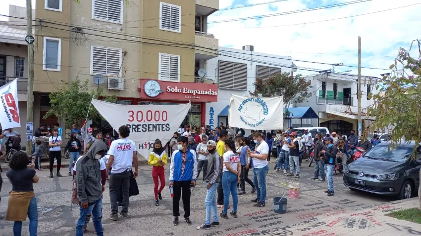 La manifestación fue organizada por HIJOS regional Chaco para manifestar su malestar porque el detenido "viola sistemáticamente el perímetro, saliendo y circulando libremente por la ciudad, hemos podido filmarlo y hacer las presentaciones judiciales pertinentes. En este momento estamos a la espera de la definición del Poder Judicial respecto a su situación de detención".