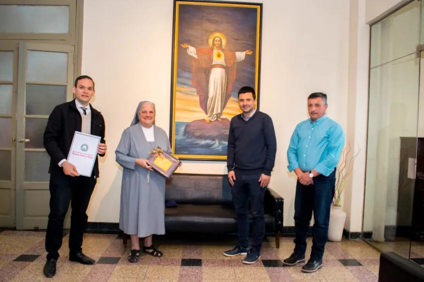 El reconocimiento tuvo lugar en la U.E.G.P N° 54 "Nuestra Señora de la Misericordia" y contó con la presencia del director de la institución Daniel Leguiza. Allí el Intendente felicitó a la Madre Beatríz por su entrega y compromiso con el servicio.
