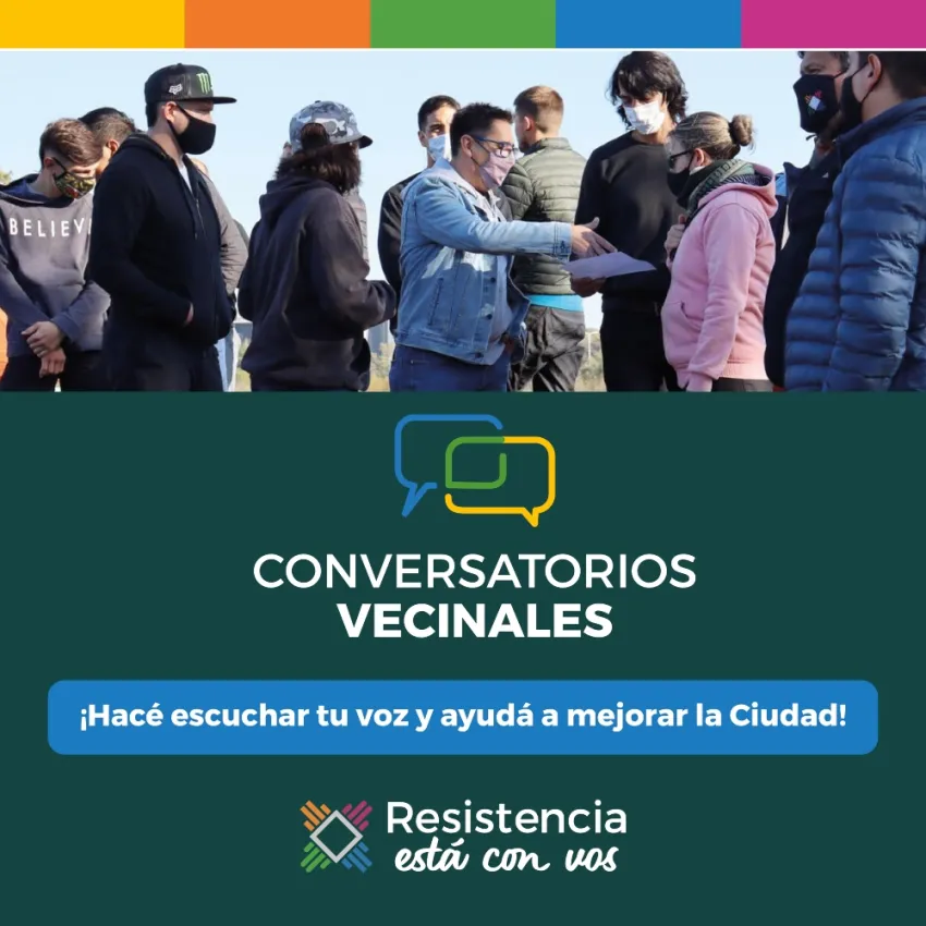 El Municipio de Resistencia iniciará una serie de conversatorios vecinales a partir del miércoles 22 de septiembre a las 17:30 en el playón del barrio Los Cisnes, ubicado en Fray Bertaca 2.200. Estos encuentros impulsados por el intendente Gustavo Martínez servirán para entablar un diálogo con los representantes de los distintos barrios y conocer las inquietudes de los vecinos para trabajar conjuntamente por el bienestar de la ciudad.