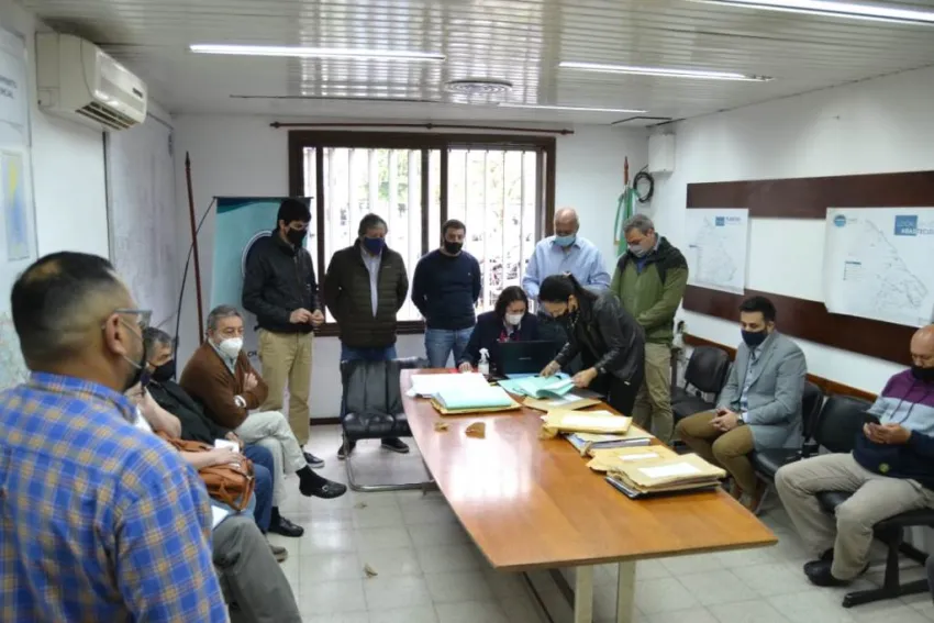 De la apertura de sobres, que se desarrolló en el Salón del Directorio de Sameep participaron el presidente de la empresa Leonardo Aguzín, los vocales Raúl Acosta y Fabián Ríos, los gerentes General Jerónimo Fernández Cosimano y de Planificación Ricardo Requena, la jefa del Departamento Legales Macarena Ormaechea, el jefe del Departamento Administración de Compras, Oscar Miranda y oferentes.