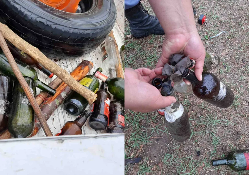 Los mismos correspondían a manifestantes de la comunidad aborigen, quienes se encontraban cortando el tránsito de la ruta provincial N° 3, a la altura del Paraje Pampa Chica. Al respecto, secuestraron varias botellas de vidrio que contenían combustible y mechas, denominadas "bombas molotov" y gran cantidad de trozos de madera, que los "manifestantes utilizan como garrotes".
