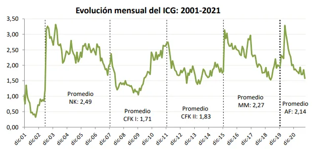 "La pronunciada caída del ICG de septiembre, desde un nivel anterior que ya era bajo, permite dar cuenta de la derrota electoral del gobierno en las PASO legislativas del 12 de septiembre", dice el reporte, cuyo trabajo de campo finalizó dos días antes de la elección.