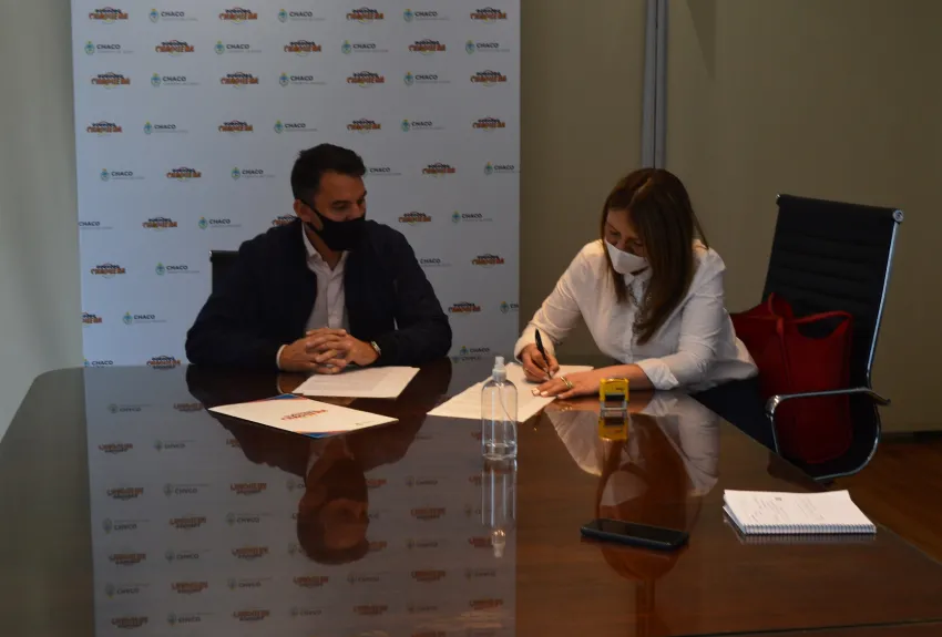 El presidente de Lotería Chaqueña, Gabriel Lemos, y la intendenta de Los Frentones, Judith Gómez, firmaron un convenio para avanzar con la segunda etapa del reacondicionamiento del complejo natatorio municipal. El acuerdo establece un mecanismo de financiación para ejecutar mejoras en el muro perimetral, veredas, juegos infantiles e iluminación del predio ubicado en el barrio Néstor Kirchner de la localidad.