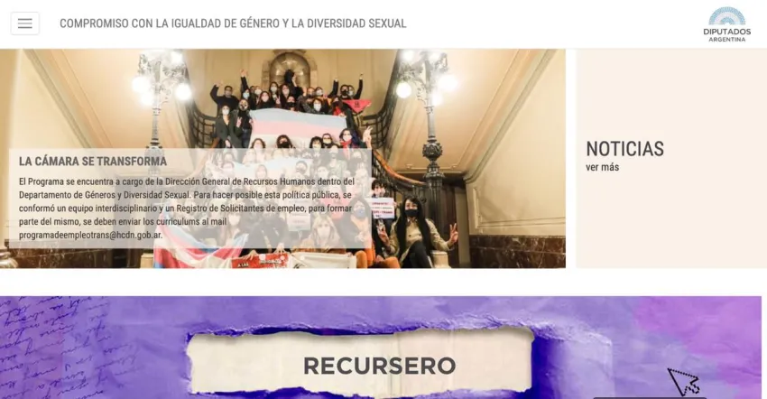 Se trata de una nueva herramienta destinada a acercar las políticas de igualdad y diversidad a la comunidad, a las personas trabajadoras de la Cámara, los medios de difusión y a organismos nacionales e internacionales.El flamante sitio ofrece un buscador para consultar las leyes aprobadas en materia género, así como los proyectos en avance.Fue diseñado por la Dirección General de Igualdad y el Departamento de Géneros y Diversidad Sexual de la Dirección General de Recursos Humanos de la Cámara de Diputados de la Nación, que preside Sergio Massa.En ese sentido, y en el marco del compromiso con la igualdad de género y la diversidad sexual, se busca garantizar el acceso a la información pública a la ciudadanía, acercando todas las acciones parlamentarias en materia de género y diversidad. El portal cuenta con la posibilidad de descargar material, contenidos audiovisuales y podcasts, conocer programas y proyectos que se implementaron en la Cámara, acceso a una línea de tiempo con las leyes aprobadas, y una sección con las actividades realizadas junto con la comunidad y organismos de Género de todo el país. Por otra parte, el sitio ofrece la posibilidad de acceder al Programa de Empleo Trans a través de la carga de CV.