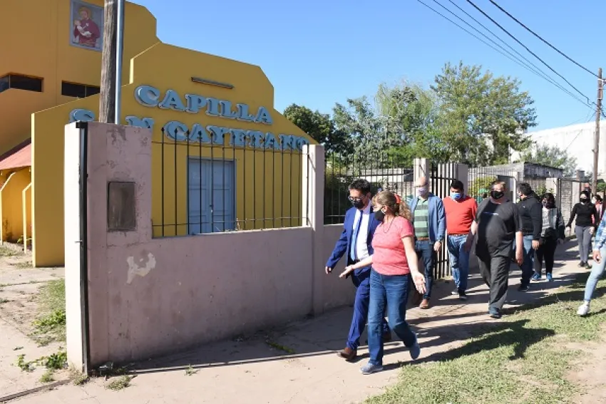También visitó la capilla San Cayetano, donde a través del programa de Esfuerzo Compartido, agentes municipales ponen la mano de obra y la institución aporta los materiales para la refacción de las instalaciones de la iglesia.