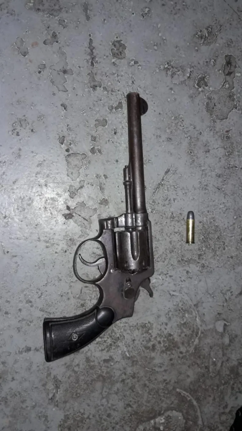 Los efectivos al ingresar al domicilio y revisar una de las habitaciones, hallaron un revólver calibre 38 y un cartucho que secuestraron.