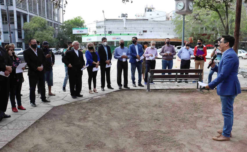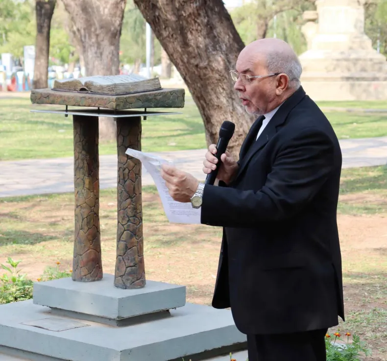 El Intendente de Resistencia, Gustavo Martínez, acompañó a la Mesa Interreligiosa del Chaco en la celebración por el Día de la Biblia. La ceremonia tuvo lugar en el monumento a la Biblia ubicado sobre la plaza 25 de Mayo (cerca del cruce de Güemes con Yrigoyen), el cual fue inaugurado en 2019 y convoca cada año a los referentes de los distintos credos religiosos.